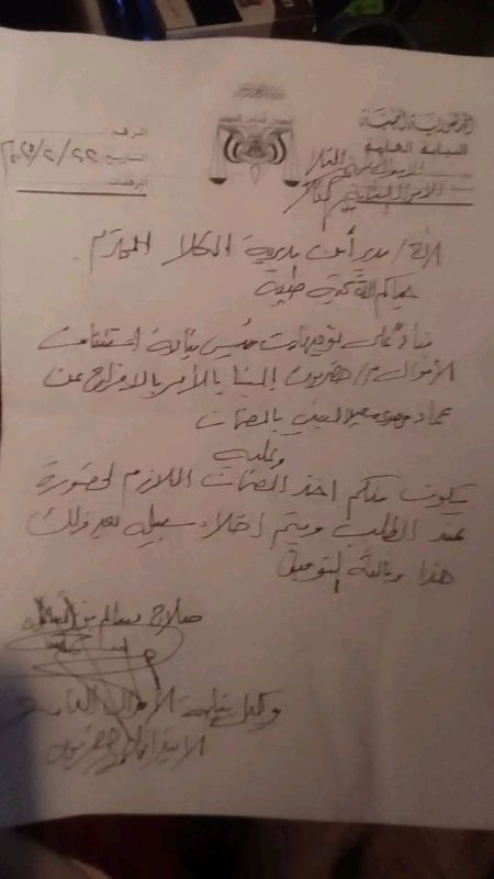 وأوضح أن ما زاد من قلقهم أكثر على مصير وسلامة أخوهم هو “رفض مدير الشرطة التجاوب مع توجيهات وكيل النيابة بالإفراج عنه، دون تقديم اي عذر أو سبب، رغم تسلمه المذكرة ورفضه حتى إعادتها له أو حتى صورة منها”.
